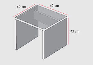 Para tener el complemento perfecto del escritorio, se puede hacer de la misma forma, un asiento o banca, así se puede poner un cojín encima, para que sea más cómodo, y guardar debajo el escritorio para que no ocupe espacio. Este asiento debe tener las siguientes medidas: 1 cubierta de 40x40 cm, 2 patas de 43x40 cm y 1 trasera de 32x15 cm.