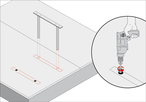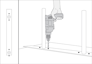 Estos agujeros se hacen con broca paleta de 12 mms. Los 2 primeros agujeros van 15 cms desde el borde superior, y los segundos van a 70 cms.