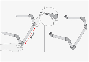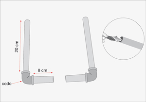 Con estos trozos vamos a formar 2 L pegando un corte de 20 cm, un codo y un trozo de 8. Aplicar una capa de pegamento por dentro del codo y por fuera del tubo para que se deslice con más facilidad.