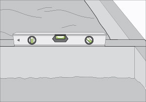 La tabla se debe regular con el nivel de burbujas para que en todo su largo esté al mismo nivel con respecto al suelo.