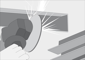 Eliminar las rebarbas de los trozos recién cortados y los más largos que vienen dimensionados de la tienda, con el disco de desbaste y el esmeril angular.