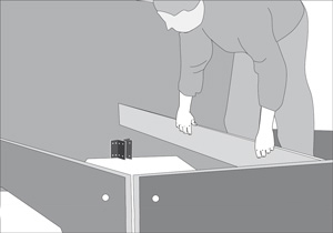 Marcar en los laterales (2 piezas de 1,90x30) un rebaje de 18 mm de espesor y 42 cm de largo, este rebaje va en una de las esquinas superiores de cada lateral.