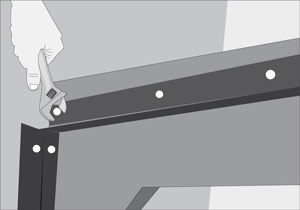 Poner los ángulos de 20 cm en cada extremo de la piecera y en sólo un extremo de los laterales (el que va hacia el respaldo). Estos perfiles hay que hacerlos calzar con los agujeros hechos en las patas de cada pieza. Se usa perno de 1 1/4” y tuerca, que se aprietan con llave punta corona y destornillador