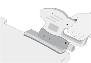 Pulir los largueros, piecera, respaldo y veladores, por todos sus cantos y en los bordes recién cortados con la sierra caladora, para eliminar astillas y mejorar la terminación.