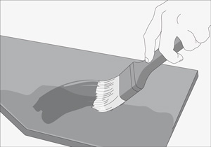 Aplicar un barniz impermeabilizante a la las piezas de madera ya teñidas, que se esparce con brocha por todos sus lados y cantos.
