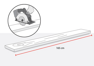 Con sierra circular cortar 6 piezas de 165 cm de las tabas de roble de 1x6”.
