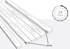 Pegar de canto los 6 tablones de la cubierta, usando cola fría. Dejar prensado por 24 horas.