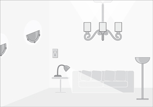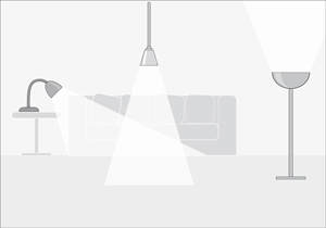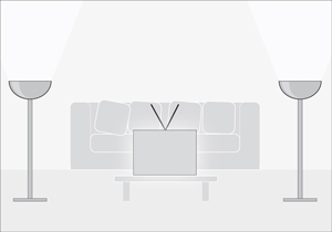 Si va a ver TV en su zona de estar, es conveniente, para sus ojos, instalar una luz general que suavice el contraste entre luz y sombra dentro de su campo de visión. El lugar no debe estar completamente oscuro. Tanto en zonas cercanas al televisor como a equipos de música necesitará tener alguna luz de apoyo.