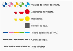 - Al diseñar el sistema de riego, se deben agrupar los aspersores en diferentes circuitos o estaciones.