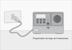 - Escoger un lugar que no se moje cuando los aspersores estén funcionando, que esté ubicado cerca del suministro eléctrico y cerca del suministro de agua, que también esté fuera del alcance de los niños y de la vista pública.