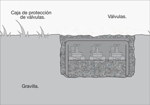 - Cuando están enterradas y protegidas con una caja para válvulas, son menos susceptibles a vandalismo o a ser tocadas por niños. También son más resistentes a climas fríos que las válvulas instaladas superficialmente.