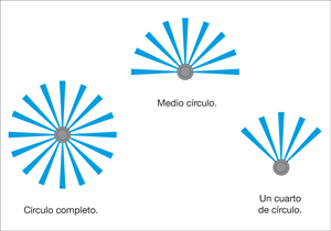 - Los aspersores de impacto de las esquinas deben ser ajustados para regar un cuarto de círculo; los perimetrales para medio círculo y los de centro para regar el círculo completo.