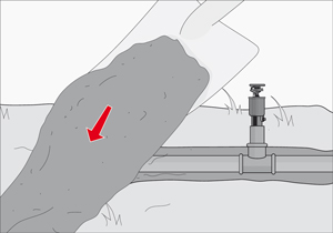 - Si fuera necesario excavar debajo de una vereda o un camino, conectar una boquilla a una manguera de jardín y luego insertar un tubo a la boquilla. Abrir completamente la llave del agua: la fuerza del chorro ayudará a abrir un túnel debajo del radier. Trabajar desde ambos lados si es necesario.