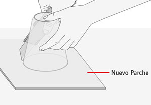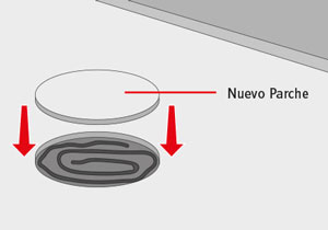 Pegar muy bien con la mano y poner peso sobre el parche durante 12 horas para asegurar la correcta unión.