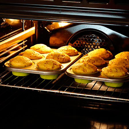 - Vaciar la mezcla y hornear 25 a 30 minutos o hasta que, al insertar un palito de madera al centro, éste salga limpio y seco. Retirar del horno y dejar enfriar.